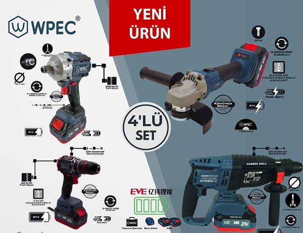 WPEC 21V 4.0AH  ŞARJLI MATKAP + TAŞLAMA + SOMUN SIKMA + KIRICI DELİCİ